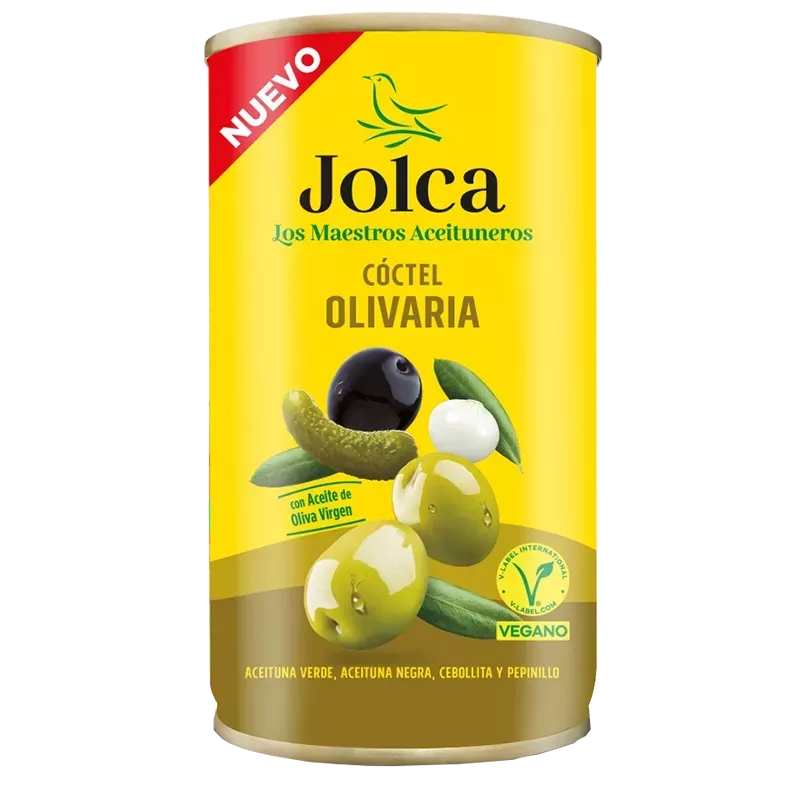 Jolca Coctel Olivaria c’est un mélange harmonieux d'olives vertes (Manzanilla) et d'olives Gordal, réputées pour leur chair ferme et savoureuse avec une marinade unique à base d'épices méditerranéennes, d'ail et de poivrons qui sublime le fruit sans en masquer le goût originel.