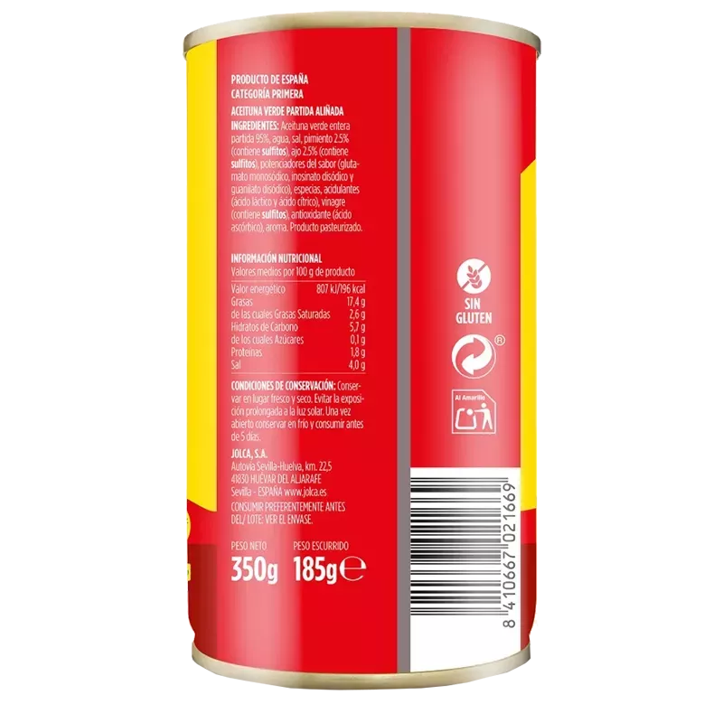 Aliño Cortijero ("assaisonnement fermier") de chez Jolca est un hommage aux recettes ancestrales des cortijos (fermes typiques du sud de l'Espagne). C'est une olive de caractère, préparée pour ceux qui recherchent une saveur rustique et prononcée.